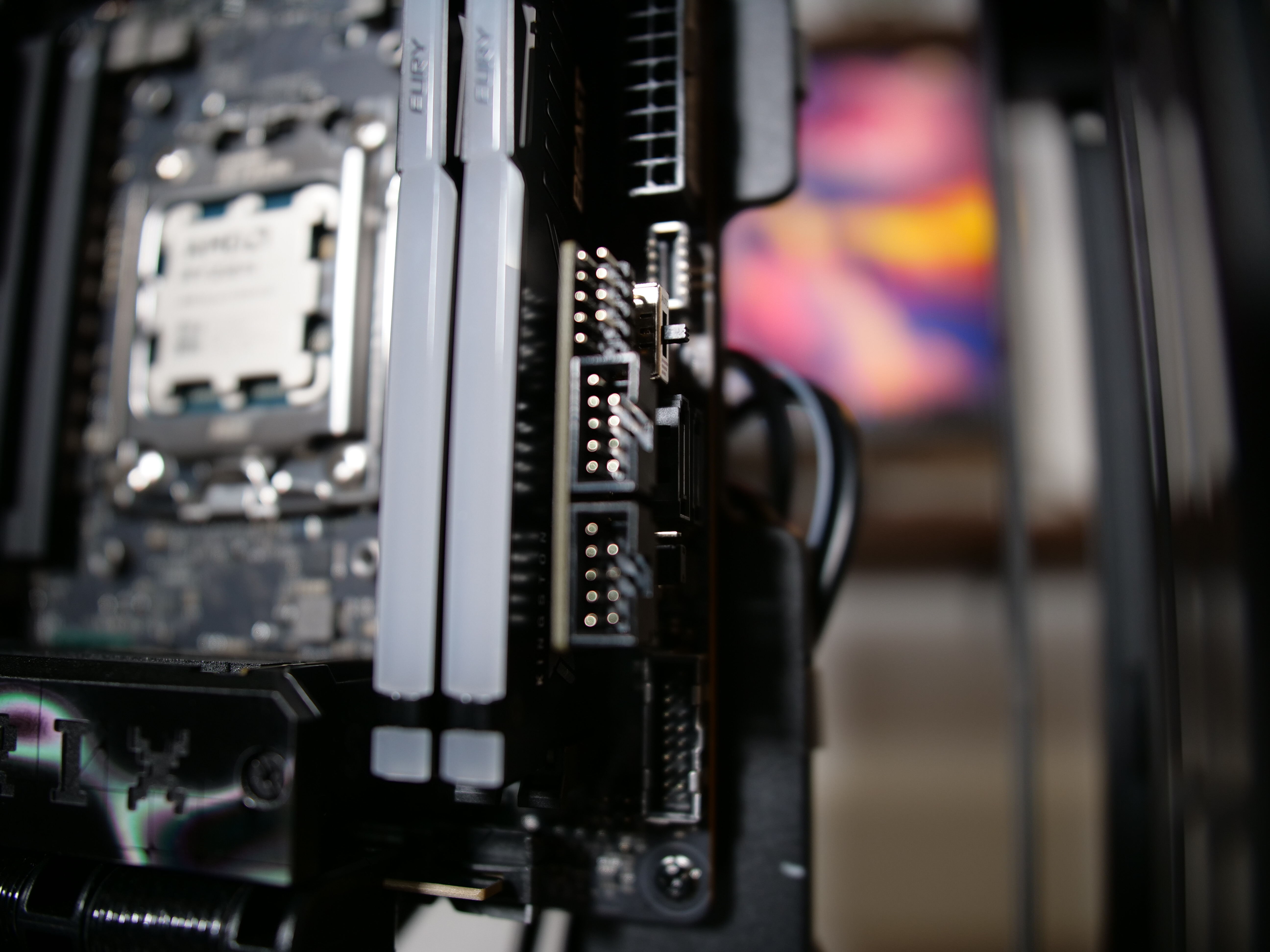 Die Verkabelung hat sich ebenfalls recht einfach gestaltet. Durch die Verwendung des etwas speziellen X870i Boards von Asus und der damit einhergehenden Adapterplatte für die USB und Front-Anschlüsse habe ich die Kabel nicht wie vorgesehen unter dem Mainboard verlegt, sondern direkt Richtung Radiator auf die Rückseite. Optisch und Airflow-Technisch nicht optimal, aber auch ein kleiner Sonderfall mit der von mir gewählten Konfiguration.