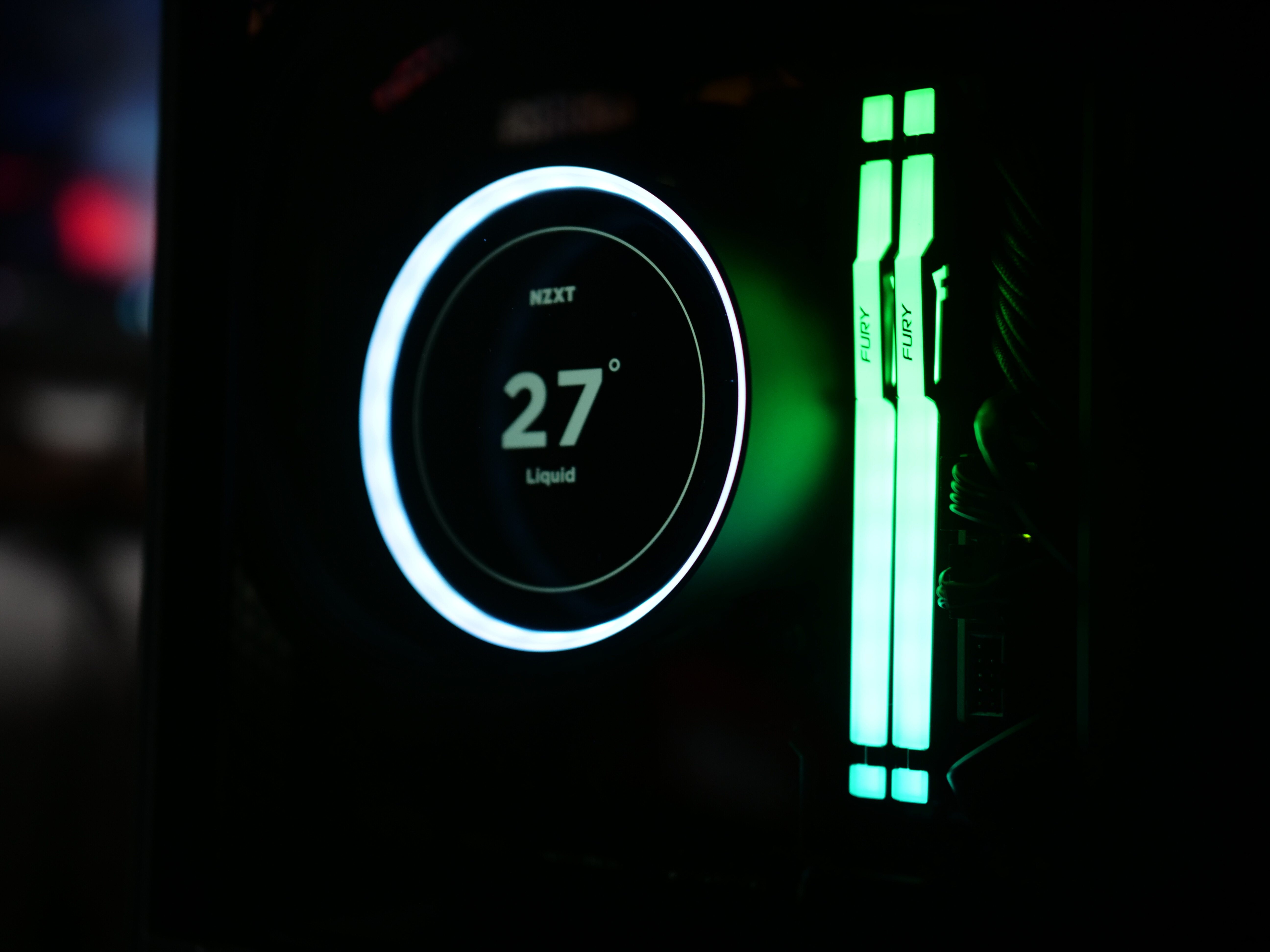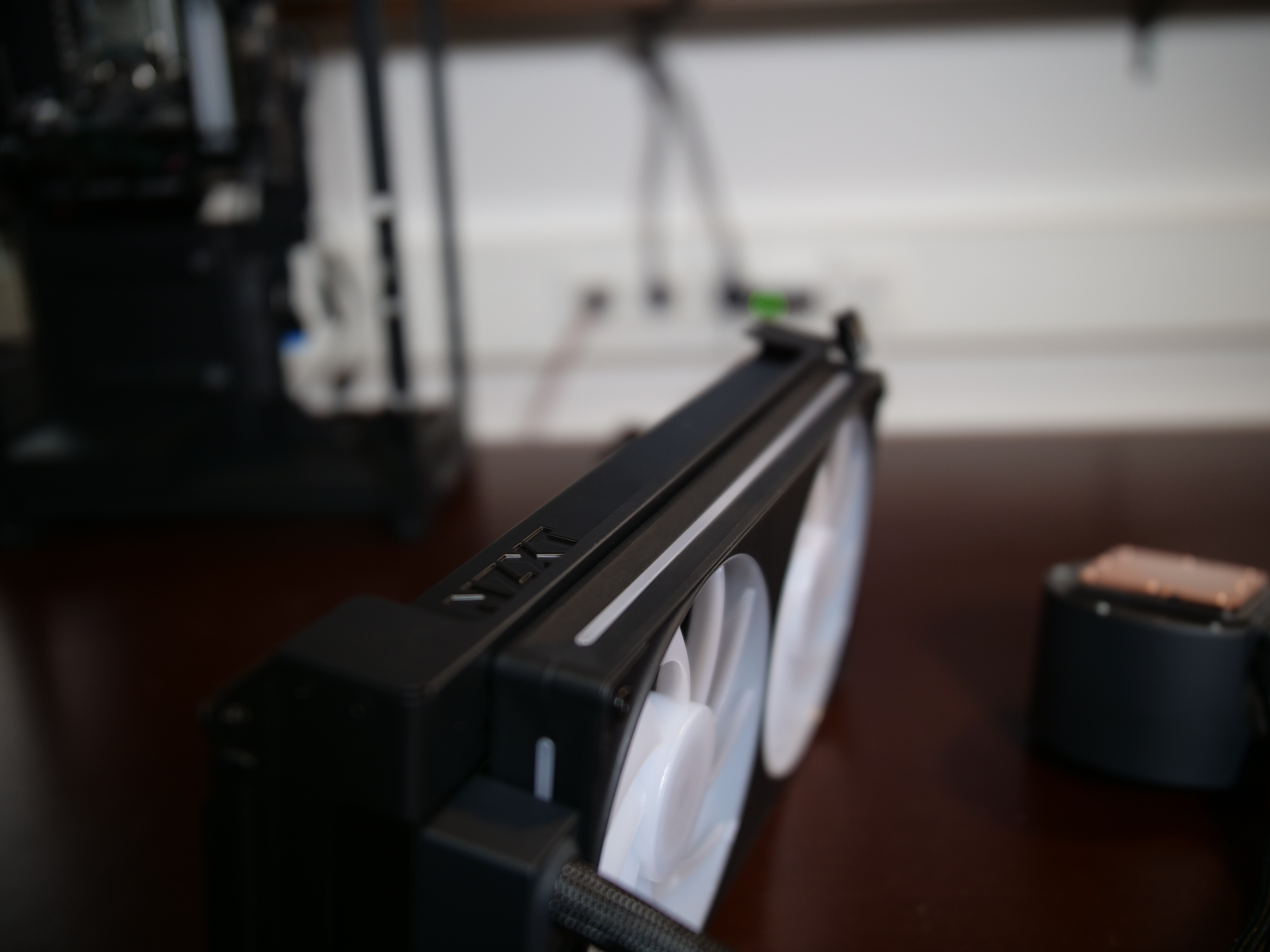 Ich habe mich hier für die meiner Meinung nach sinnigste Push-Variante ins Case entschieden um dem RAM, Spannungswandlern und SSDs etwas Airflow zu verpassen. In Verbindung mit den obigen Outtake-Fans, ist dies auch die vorgesehene Einbauweise von NZXT… Außerdem kommt noch die schöne Optik der verwendeten, beleuchteten Frame-Fans auf der Kraken Elite hinzu.