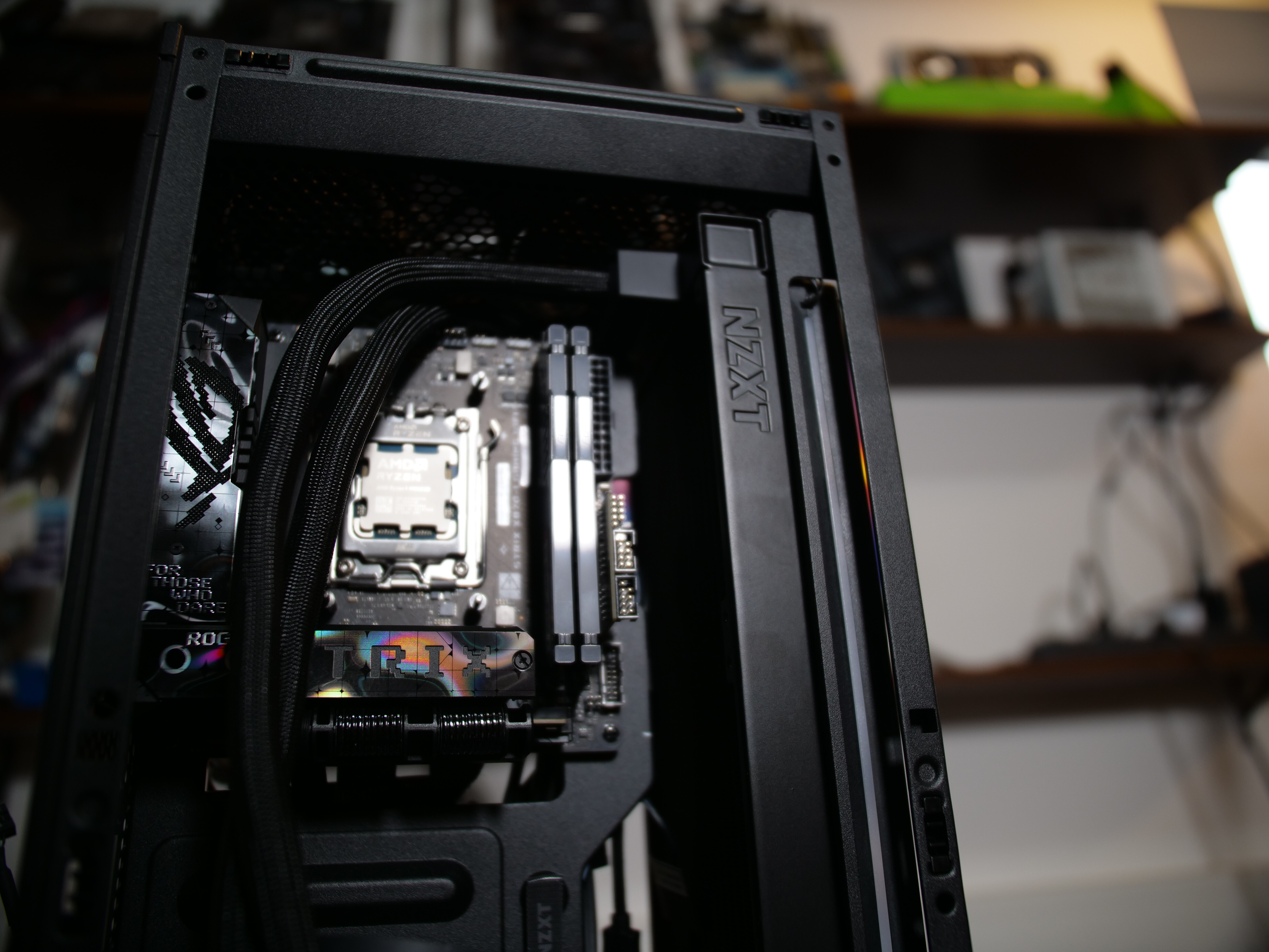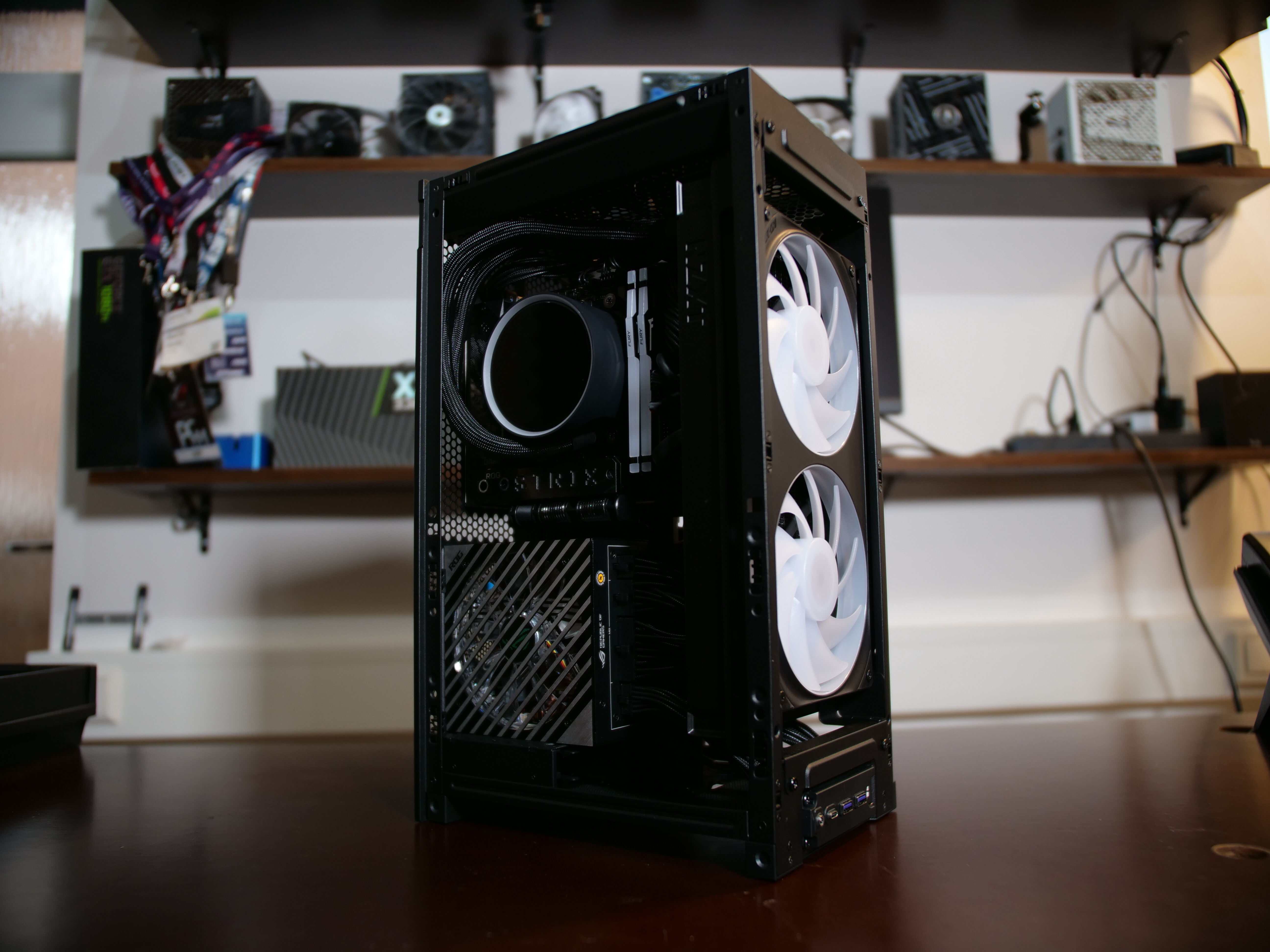 Aufgrund des ITX-Formfaktors wird hier auch ein ITX-Mainboard, sowie ITX (SFX) Netzteil benötigt. Zumindest letztes bekommt man nun auch aus dem NZXT-Sortiment. Ich habe hier auf das Asus Loki als SFX PSU, sowie ein High-End X870i ROG Mainboard zurückgegriffen.